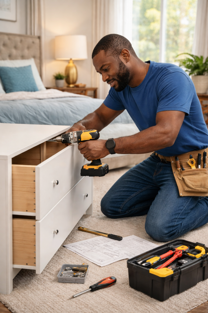 We specialize in furniture assembly, TV mounting, light fixture and ceiling fan replacement, smart home installation, internet setup, and other small home improvement projects. Every job is handled with careful attention to detail, clean workmanship, and respect for your home. From organizing parts and following precise instructions to ensuring everything is level, secure, and fully functional, we take pride in delivering work that looks great and lasts.